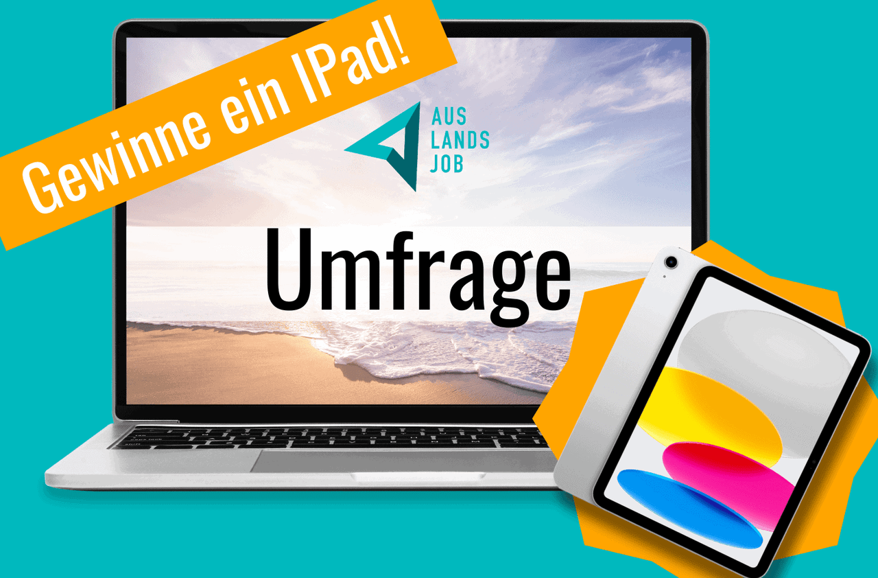 Du hast Lust auf einen Auslandsjob? Nimm teil und komme deinem Job im Ausland einen großen Schritt näher. Als Dankeschön für deine Teilnahme gibt's den großen Auslandsjob-Guide! Nimm zusätzlich an der IPad-Verlosung teil!